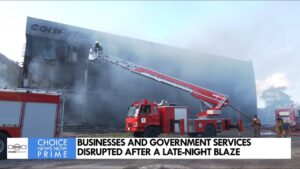 BUSINESSES AND GOVERNMENT SERVICES DISRUPTED AFTER A LATE-NIGHT BLAZE